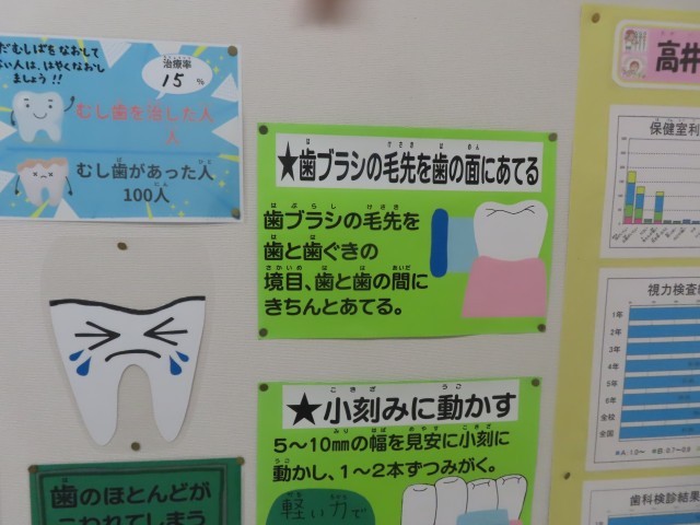 保健室の廊下の壁面の環境です。養護の先生方が、日々工夫してきれいな環境づくりに努めてくれています。