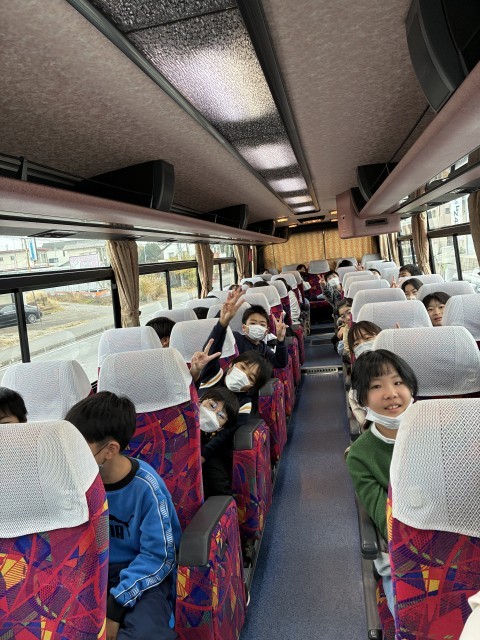 先ほど学校を出発し、バスでも楽しく過ごしています。