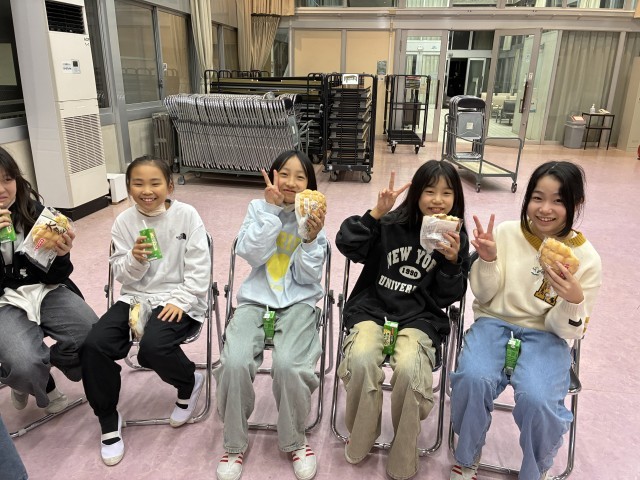 みんなの顔より大きいメロンパンを美味しそうに食べています。