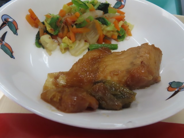 今日は『ごはん』、『さばの味噌煮』、『おかかあえ』、『けんちん汁』。