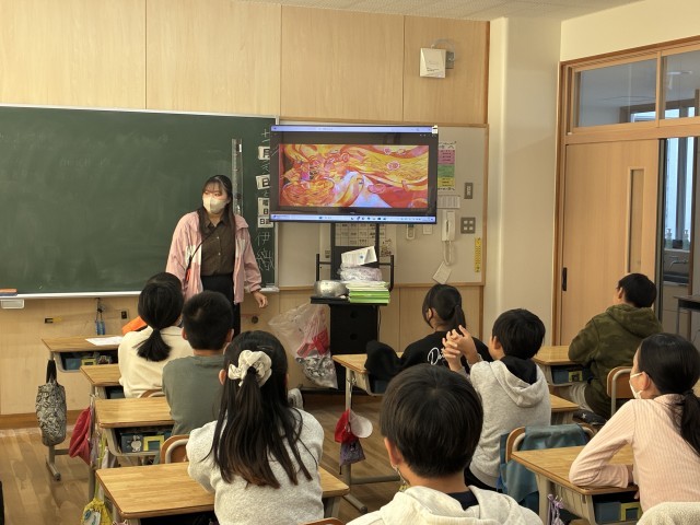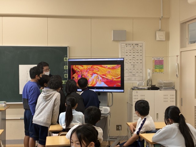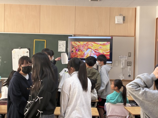 絵画を鑑賞し、自分の感じ方や考えたことを自由に伝え合います。どの教室でも自由な意見交流がされていました。笑顔がいっぱい見られる朝鑑賞。来月はどんな絵画を鑑賞しようかな?楽しみです。