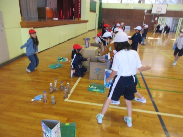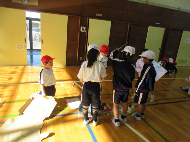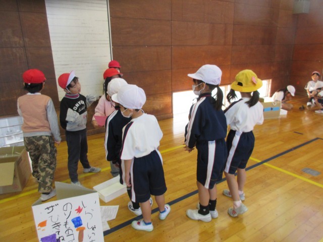 学年のおもちゃまつりをしながら、来週に予定されている「秋のおもちゃまつり」をとても楽しみにしていることが伝わってきました。来週は、幼稚園や保育所の子供たちに遊んでもらいます。「もっと低くした方が、小さい子には、やりやすいかな。」…この日の反省を次回に生かそうと考えていました。