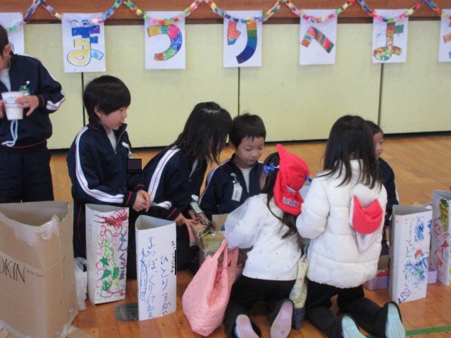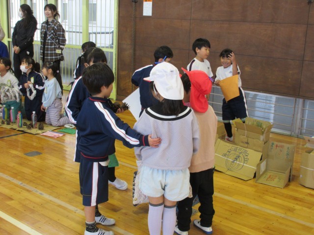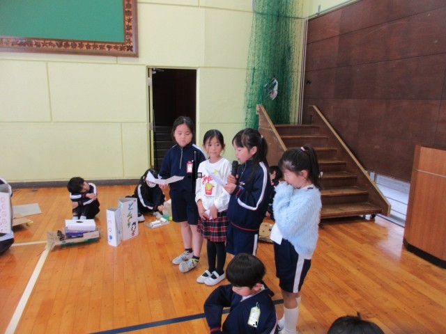 秋のおもちゃまつりでは、司会担当の子供たちも、司会やインタビューなど、仕事をしっかり成し遂げました。終わりの会の後、「またね。さようなら~。」と、年長さんをお見送りしました。時間をかけて準備を進めてきた秋のおもちゃまつり、子供たちも達成感を得られたようです。大成功に終わって、子供たちも満足そうでした。