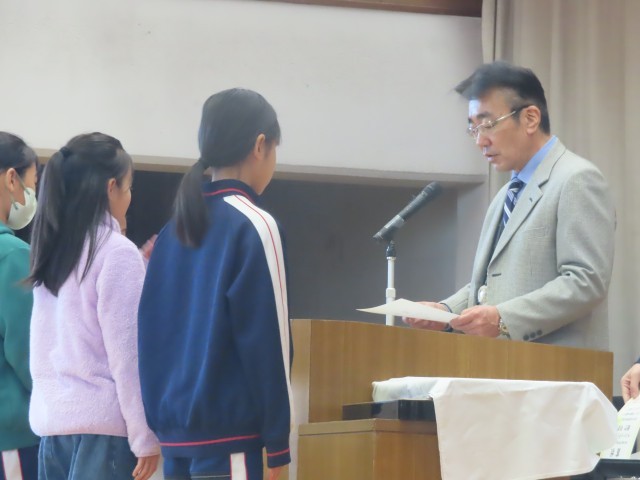 表彰集会。持久走大会の表彰の様子です。本当によく頑張りましたね。😊