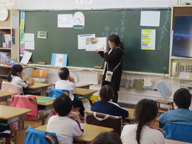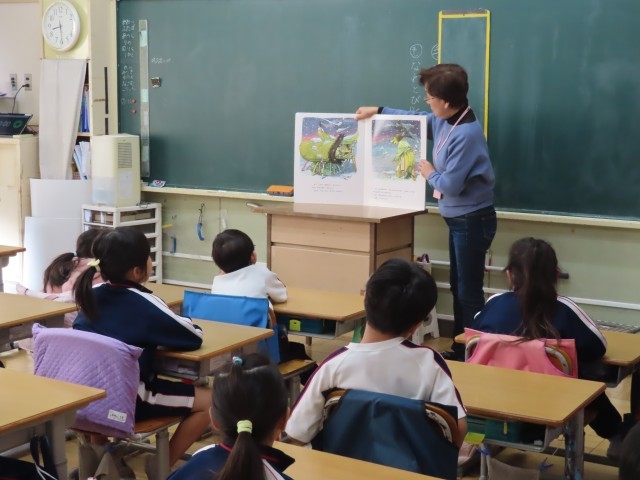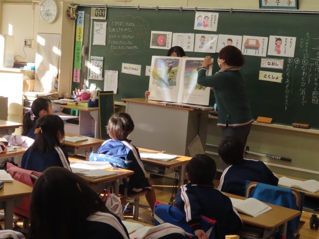 今朝は『読み聞かせ』が行われています。高井小の自慢。ボランティア団体『フォレスト』の皆様による読み聞かせ。