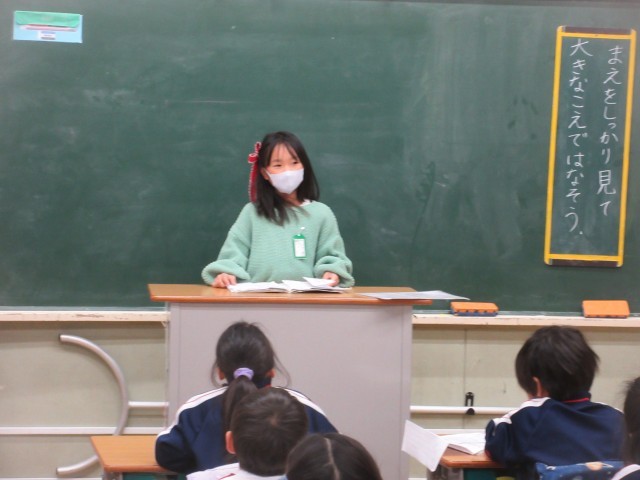 国語では、「すきなきょうかをはなそう」の学習をしました。声の大きさや話す速さに気を付けて、みんなの前で話をしました。たくさんの聞き手に聞こえるしっかりとした声量で、落ち着いて話をすることができました。