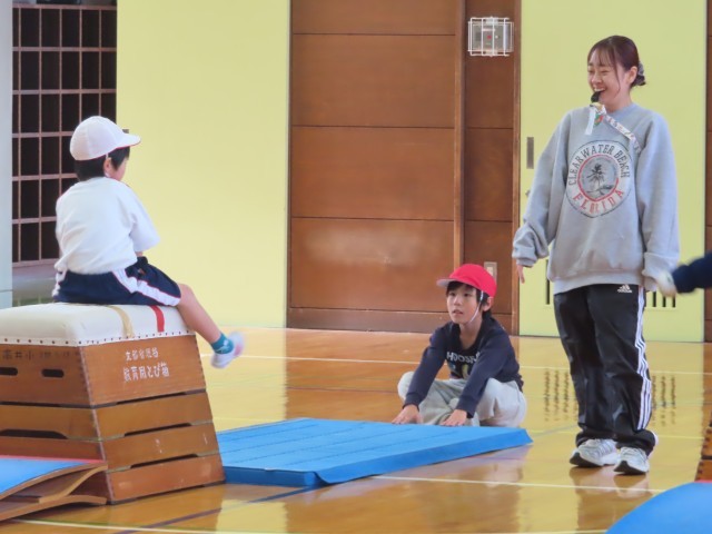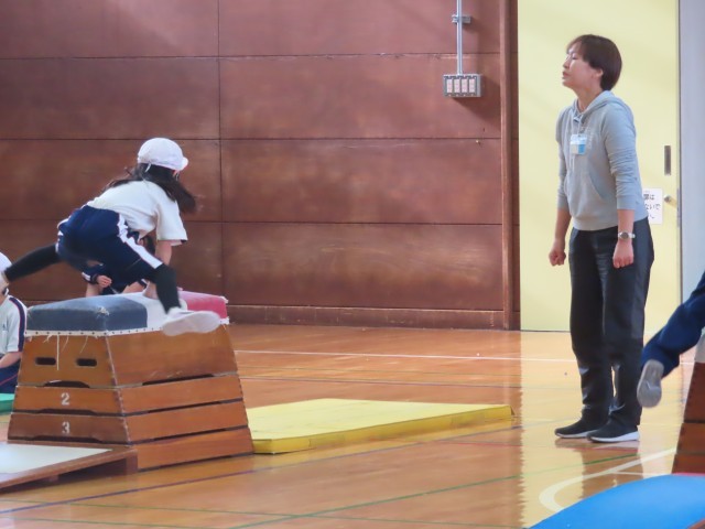 1年生の授業の様子です。体育の授業で『跳び箱』を行っています。