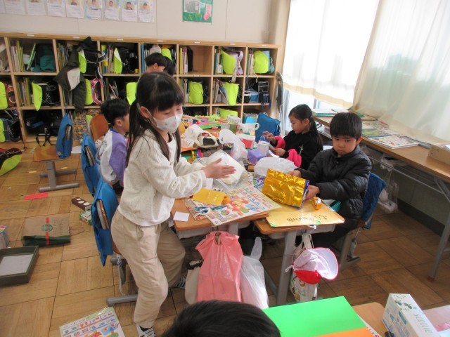 12/19 1年生 図工、うきうきボックス