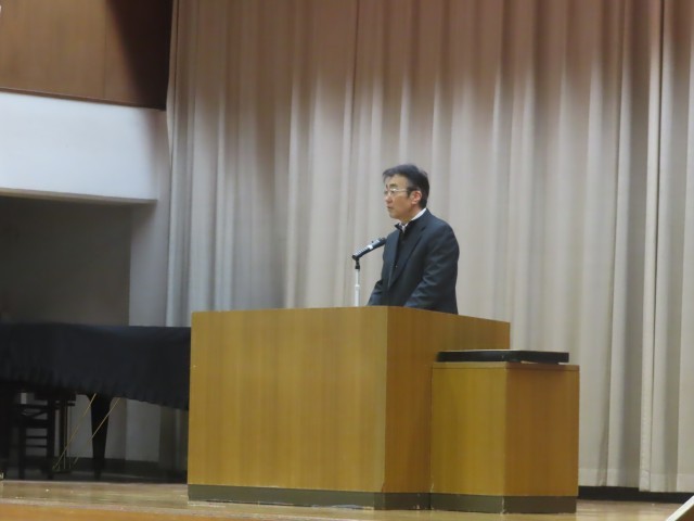 今日の全校集会の時の校長の話は1分。