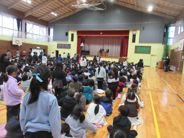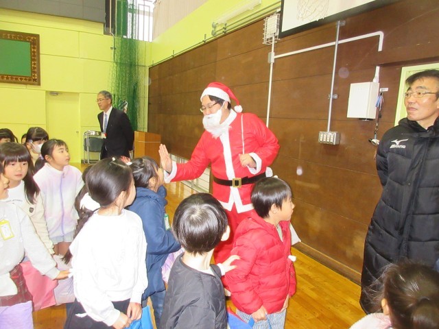 今日は、冬休み前全校集会、表彰集会が行われました。全校集会では、お話を聞いて冬休みの心構えをもつことができました。最後にサンタクロースが登場し、子供たちは嬉しそうにサンタクロースとハイタッチをしていました。