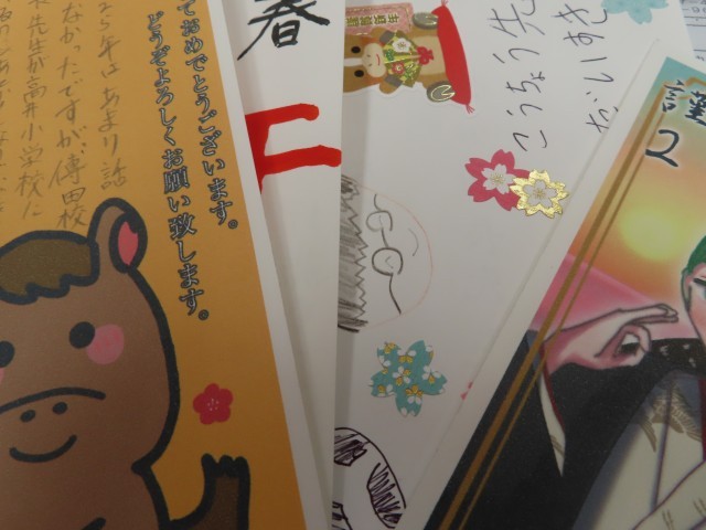 私(校長)宛の年賀状もたくさん。いつも本当にありがとう。😊