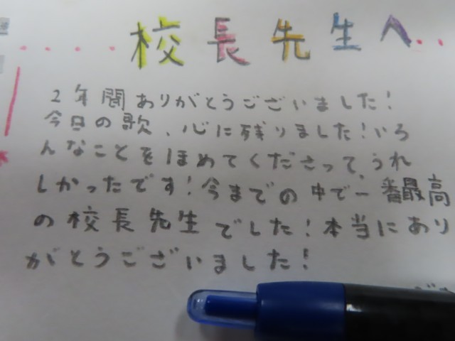 私が初めて校長として高井小に赴任し、出逢えた6年生が今は中学校3年生。