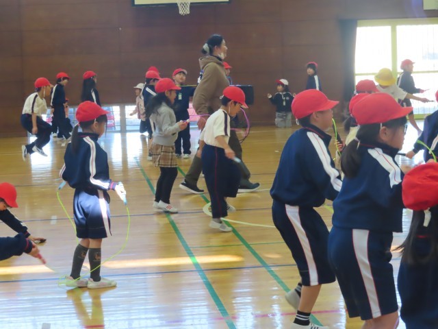 1年生の様子です。体育の時間。昨日は『短縄跳び』に挑戦していました。