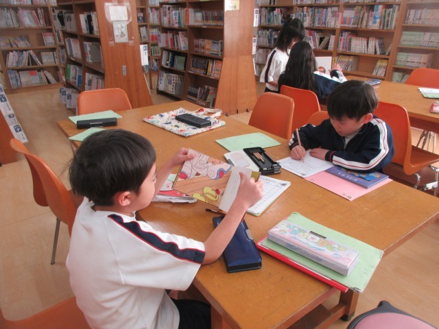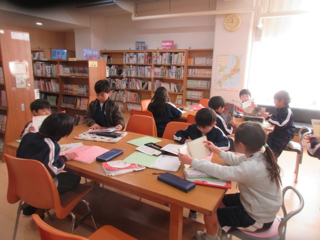 国語では、「むかしばなしをたのしもう」の学習をしています。図書室に入って、いろいろな昔話を読んでみました。「『かもとりごんべえ』って、こういうお話だったんだね。」「題名は聞いたことがあったけど、お話の内容は初めて知ったよ。」…たくさんの昔話に触れることで、日本の伝統的な言語文化にも親しんでいってもらいたいと思います。