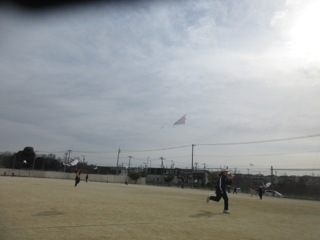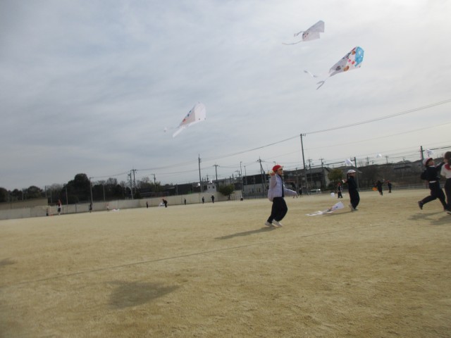 生活科の時間には、「ふゆとなかよし」の学習で、たこあげをしました。自分が描いた絵のたこが青空に向かって上がっていくと、とてもうれしそうでした。風を利用して遊ぶ楽しさに気付くことができました。