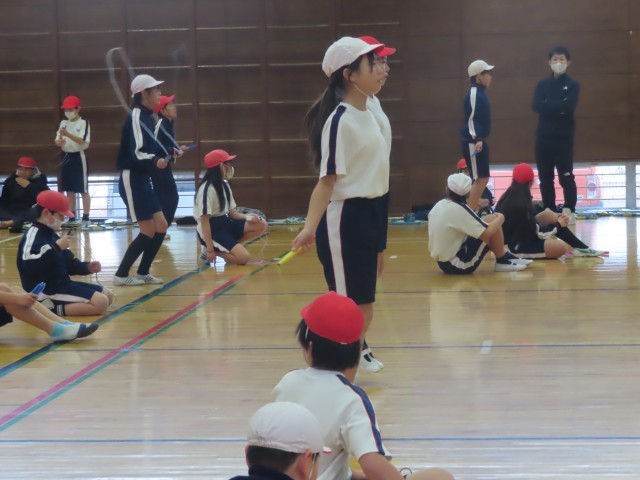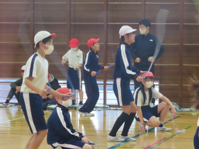 6年生の様子です。寒い中、体育館で『短縄跳び』に挑戦しています。