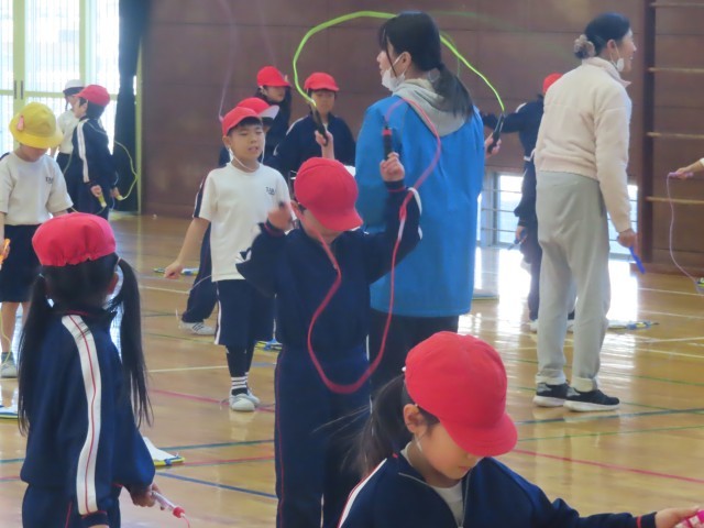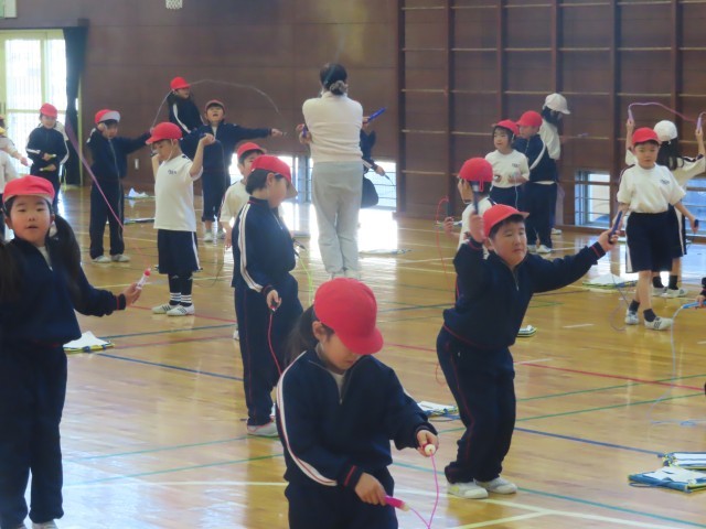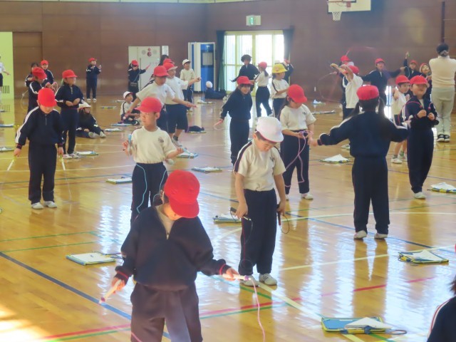 1年生の様子です。本当によく頑張っています。目をキラキラさせながら、短縄跳びの練習に取り組んでいます。