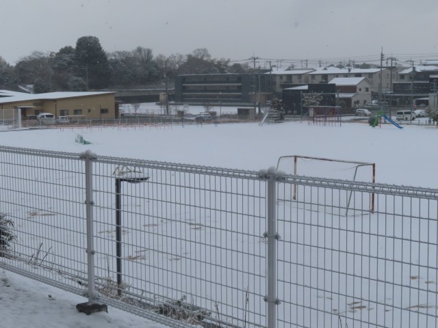 昨日からの雪で、グランドは真っ白。⛄⛄
