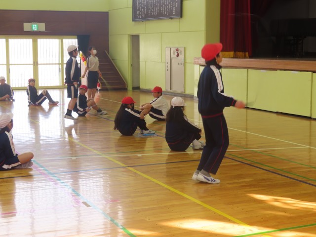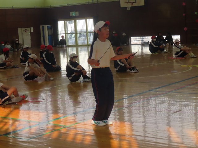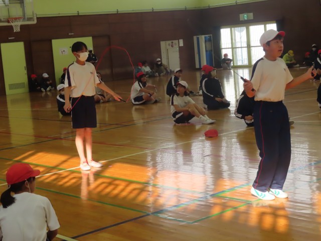 6年生の様子です。体育の時間。短縄跳びを行っていました。