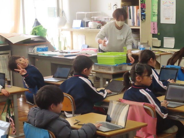 いつも笑顔で迎えいれてくれる1年生。時には、カメラに向かって✌も。(笑)