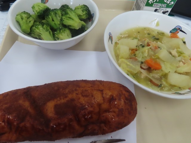 今日は『ココア揚げパン』、『ポトフ』、『ブロッコリーのガーリックソティ』。