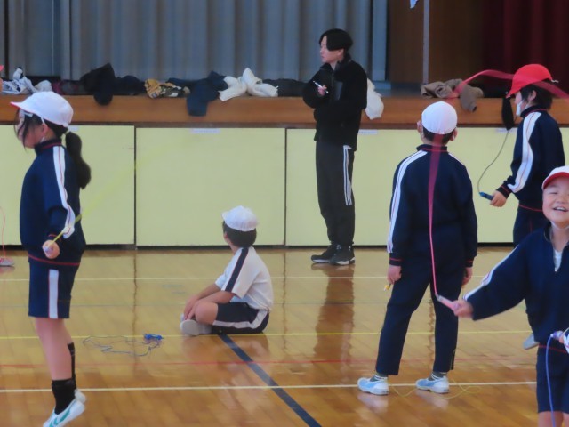 短縄跳び。とっても上手になりました。頑張っていますね。