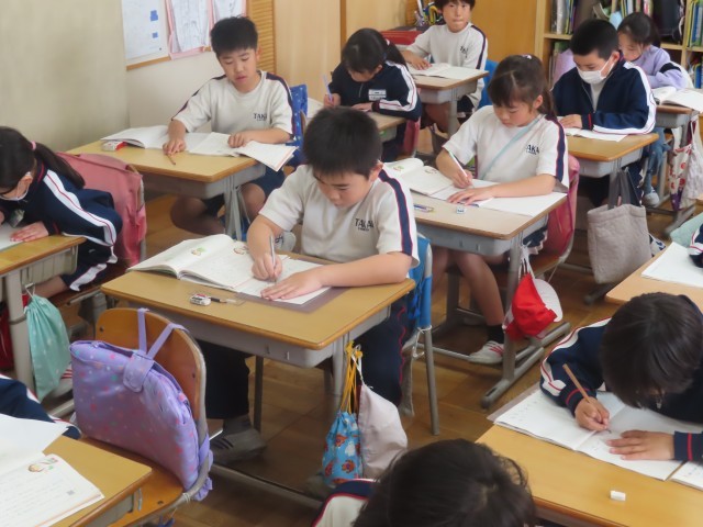 2年生の様子です。現在、学校の事情で2年生の国語の授業を担当しています。