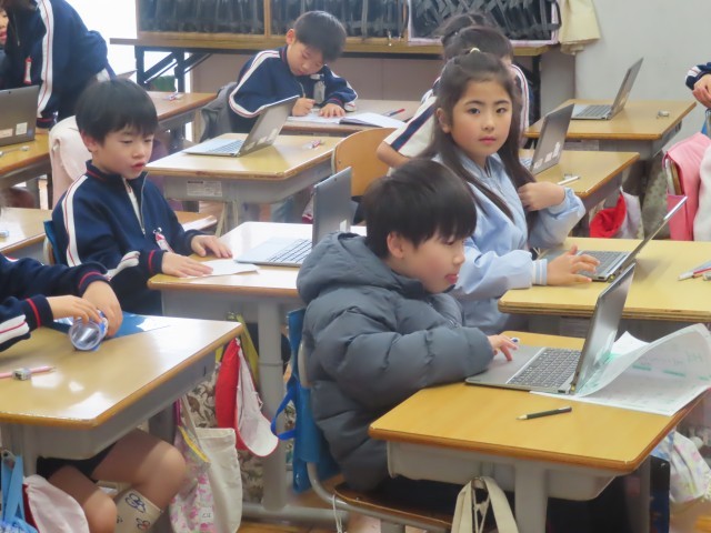 1年生の様子です。目をキラキラさせて、学習に取り組むことができています。