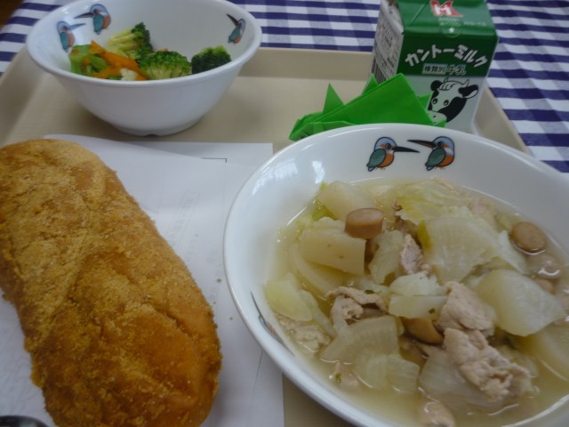 今日は『きなこあげパン』、『ポトフ』、『ブロッコリーサラダ』。確かに、スペシャルメニューなんです。『あげパン』はもちろんですが、『ブロッコリーサラダ』がとっても子供たちに人気があるんです。