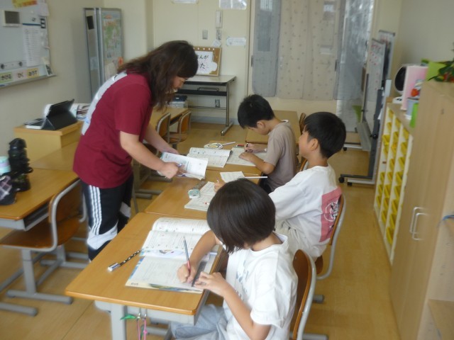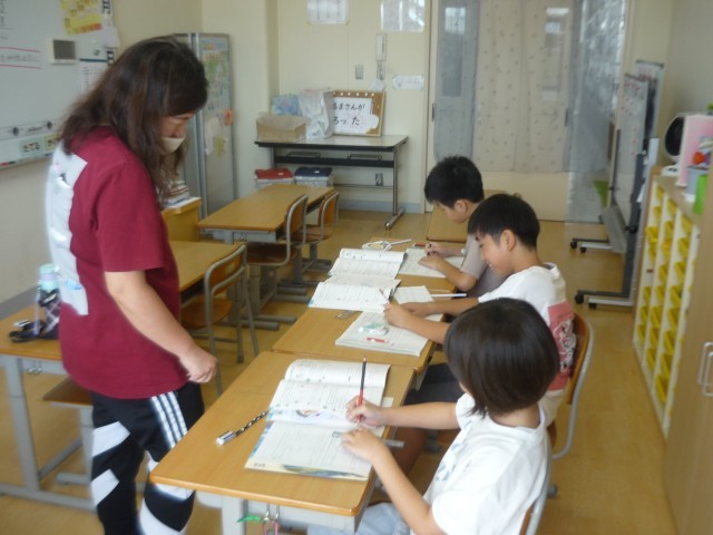 相談学級の授業の様子です。一人一人の児童が、真剣に学習課題に向き合うことができています。頑張っていますね。