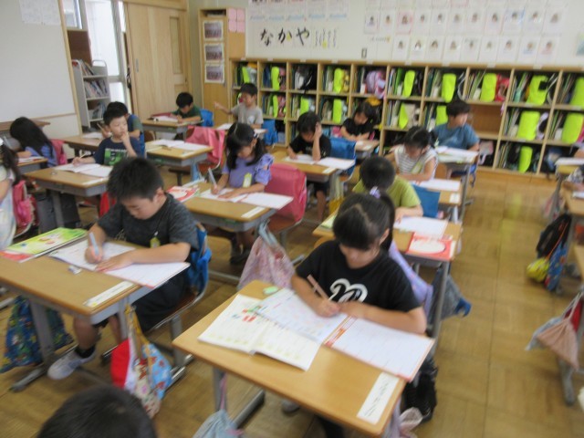 9月13日(金) 国語では、漢字の学習が始まりました。漢字スキルで初めに書き込みをし、その後、スキルノートで練習をします。スキルノートは、宿題に出されることが多くあります。初めて習う漢字を一生懸命練習していました。