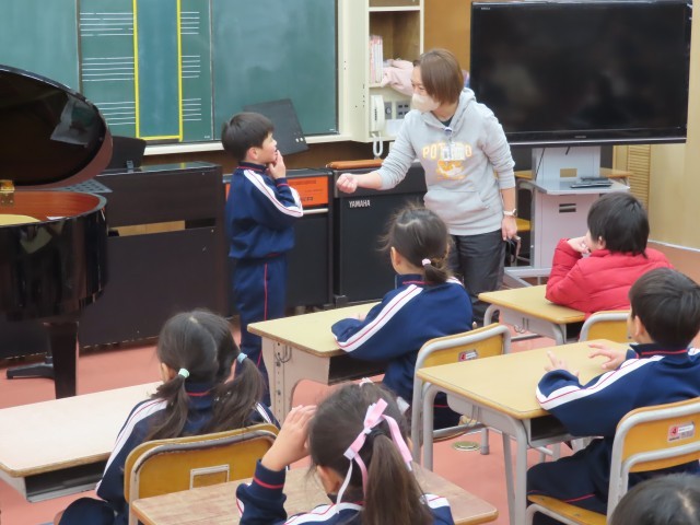 1年生の音楽の時間に招待してもらいました。今日は、ピアノのリサイタルがあるとか・・・。