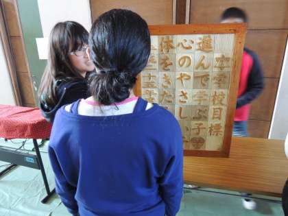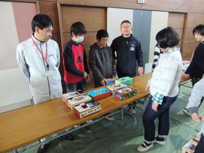 みんなで作った卒業制作の花台と、1人1人が卒業制作(オルゴール)を卒業式会場に展示しました。