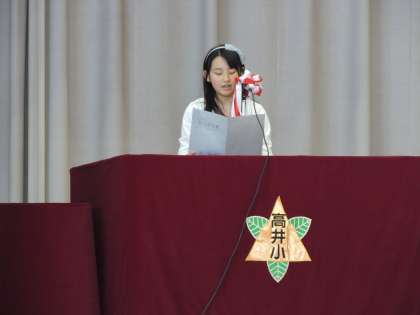 校長先生のお話では、「目標に向かってがんばる人になってほしい」「周りの人を大切にできる人になってほしい」「高井小の5つの心得 1元気なあいさつをします 2人の話をよく聞きます 3誰かを傷つけたら『ごめんなさい』と言います 4人のせいにせず 進んで自分で行動します 5不思議だなと思う気持ちを大切にします を心がけてほしい」というお話がありました。