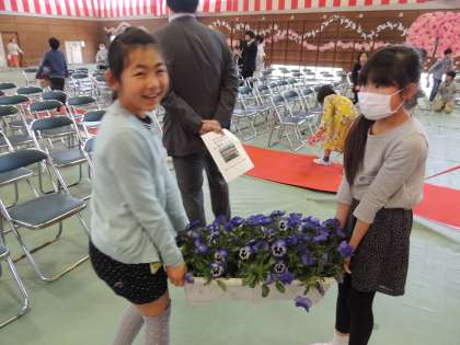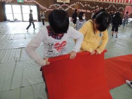 シートを丸めたり、いすを運んだり、花を運んだり・・・と大変な仕事がたくさんありましたが、一生懸命にがんばって、体育館はあっという間にきれいになりました。
