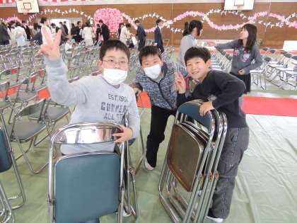 入学式終了後、5〜6年生が片付けをしてくれました。
