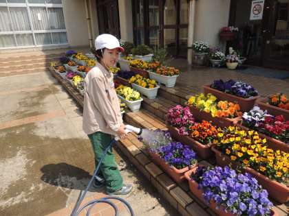 国旗掲揚、花の水やり、放送、体育小屋の開け閉め・・・と毎日いろいろな委員会の子がしっかりと自分の活動をがんばっています。