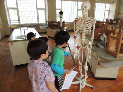 2年生が「ここは理科室だよ。」「ここは体育館。」と優しく説明しながらたんけんしました。