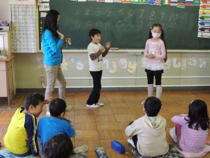 英語で数字を数えたり、自己紹介をしたり、とても楽しそうでした。