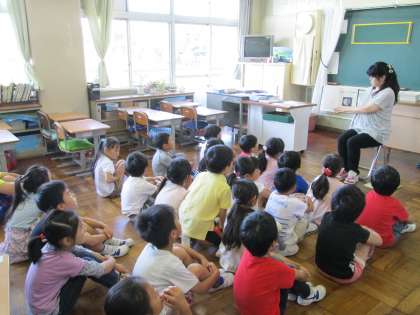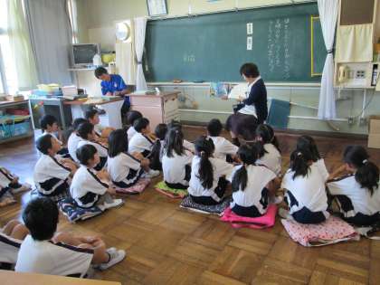 学習ボランティアである読み聞かせの「フォレスト」の方々が,本の読み聞かせをしてくれました。1年生・2年生は,楽しく読み聞かせを聞いていました。