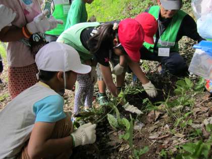 生活科の学習で,ゆめみ野公園自然観察会に行きました。「環境NPOとりで」の皆さんにご協力いただき,植物や虫などの自然と触れ合ったり,公園の遊具で遊んだりしました。