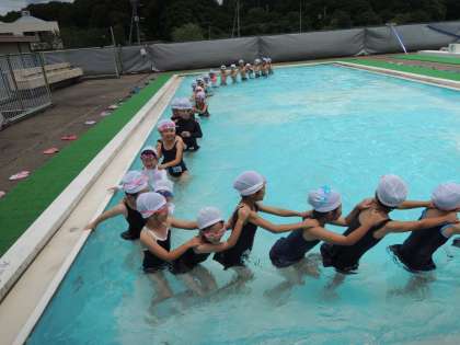 みんなでぐるぐるプールの水をかき回したり,