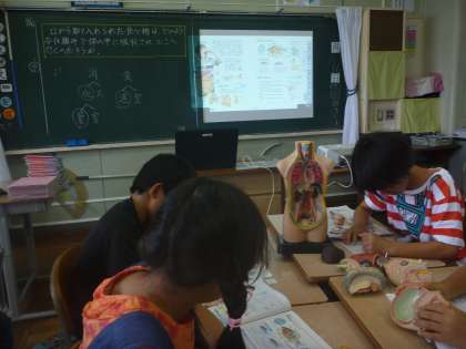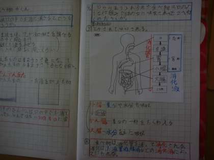6年 理科【体のつくりとはたらき】 公開日 2016/06/16 更新日 2016/06/16 6年生の様子 6/16(木) 6年生は,今日も元気に一日を過ごしました。 2時間目の理科では,消化管について学習しました。口から肛門までの食べ物の物語を,模型を使って調べました。ノートの書き方が,とても上手な友達がたくさんいました。