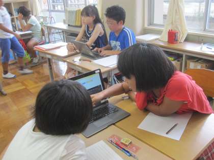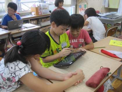 コンピュータ室が工事中なので、教室でタブレットを使って調べました。