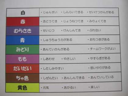 席替えの恒例行事になりました「ユアカラ−」です。相手の良いところを色を使って伝えます。グループで一緒に過ごした友達と交換し合いました。