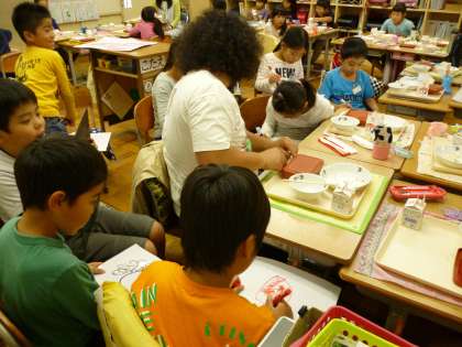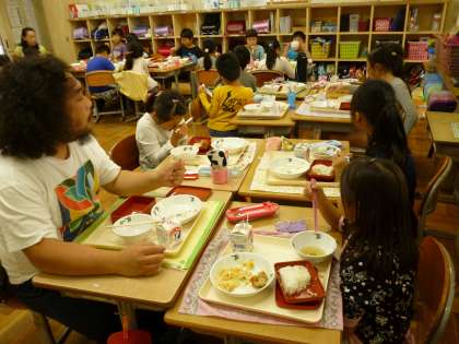 2年 ドクター(栗原先生)との給食タイム 公開日 2016/10/17 更新日 2016/10/17 2年生の様子 10月14日(金) 東京芸術大学のドクター(栗原先生)に絵の指導をしてもらい,素晴らしい作品がたくさん出来上がりました。活動の後は,みんなで給食タイムです。楽しいお話をしているかと思えば,給食が食べ終わると,みんなドクターの周りに集まってスケッチタイムが始まりました!!みんなドクターの特徴をよく捉えたイラストが描けました。