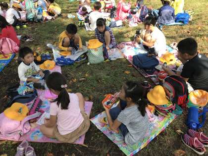 班毎の活動が終わった後にお弁当を食べました。オヤツも楽しく食べました。