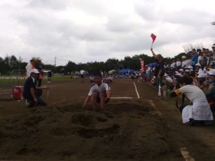 走り幅跳び、男子は1本、2本とファールしてしまいましたが、最後の試技で見事逆転優勝しまた。実力発揮です。