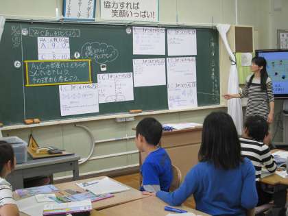 本校では,「数学的な思考力・表現力を育てる算数科学習指導のあり方〜ともに学び合う活動を通して〜」を研修テーマとして,児童の学力向上に努めています。