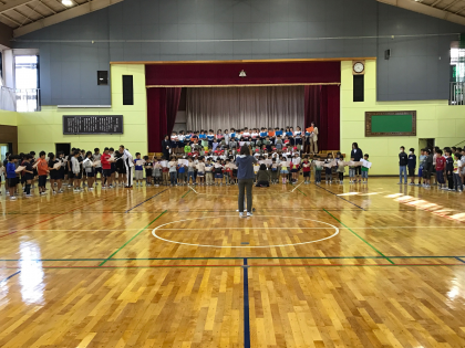 【全学年】群読の練習が始まりました。 公開日 2016/10/27 更新日 2016/10/27 児童の様子 10/26(木)今日からどんぐりっこ祭りの「群読」の全体練習が始まりました。 今年の題材は「地引網」。今まで各教室で練習してきましたが,全員で合わせるのは今日が初めて。最初は少し難しく,なかなかうまくいきませんでしたが,これから本番までしっかりと練習していきたいです。